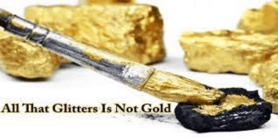 Just like a gold coated ornament, that becomes an ordinary metal, once its polish is eliminated, the same way, many beautiful persons and things have deceptive appearances. They may be as alluring as gold from outside but once, they show their true colours, they tend to become as ugly as coal.
