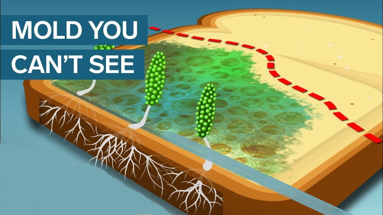 The roots that mould has are not visible to us this means that we can only see the ‘top’ part of the mould. The roots of mould spread as well which means that the roots of mould can pass through theinside of the bread. This means that the roots of the mould can spread to the ‘clean’ part of the bread. This just proves that absence of evidence is not evidence of absence because even though we can’t see the mould, it is probably there. So what to do? Well, just look at the expiry date and throw away the bread if it has passed the date, don’t think about cutting off the mouldy part of the bread to eat the visibly ‘clean’ part. So, don’t eat mouldy bread.